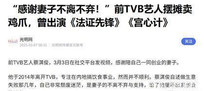 就说TVB的前艺人蔡淇俊吧,他曾经因为片酬不给力而感到困扰。